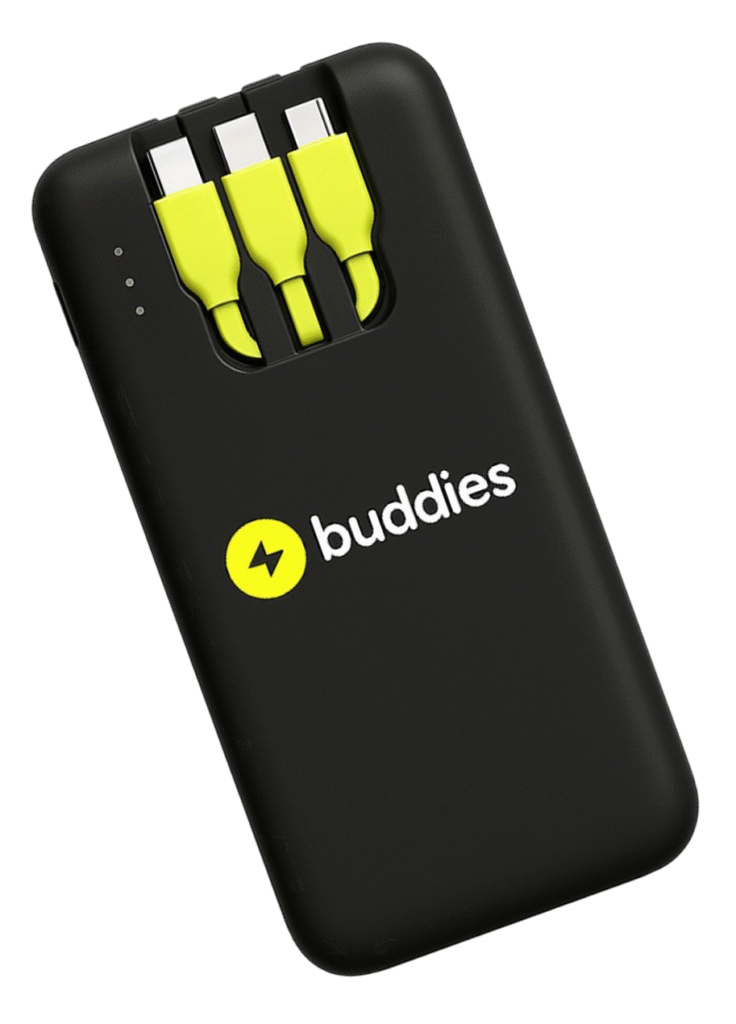 En Buddies creemos que nunca deberías quedarte sin batería y que cada conexión es una oportunidad para que una marca destaque. Ofrecemos carga portátil rápida y