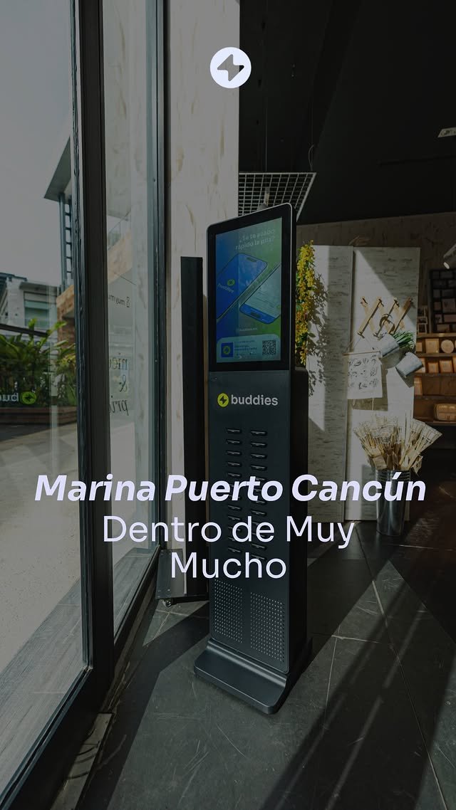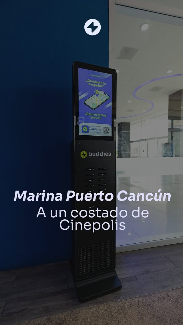 En Buddies, cada estación carga dispositivos y proyecta tu marca en pantallas digitales ubicadas en puntos de alto tráfico como aeropuertos, centros comerciales, universidades, restaurantes y eventos.